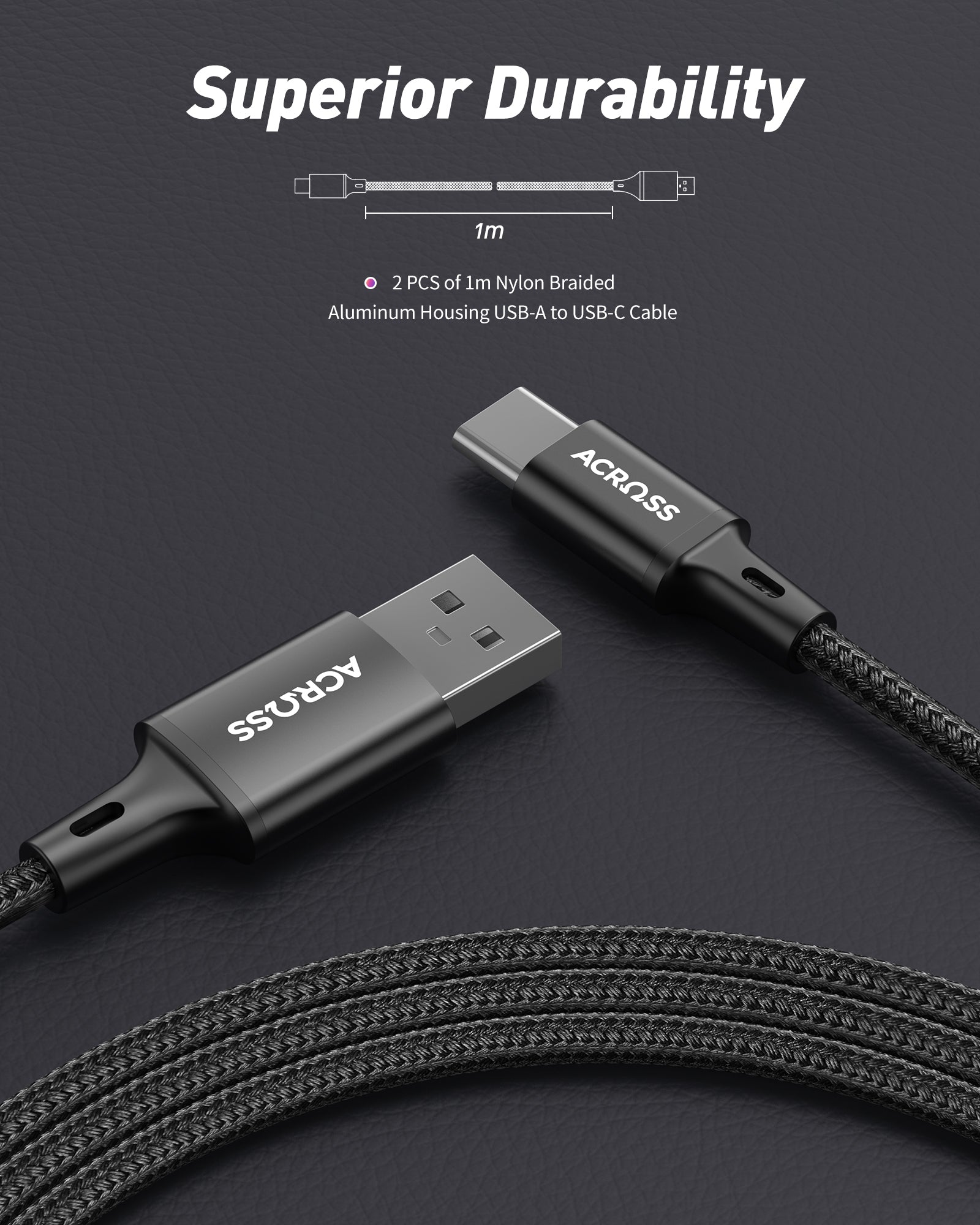 Across CurrentCord 2-packs 1m USB-A to USB-C braided cable with aluminum housing