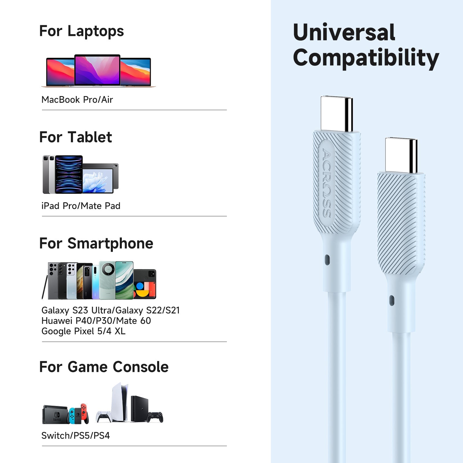 1 x CurrentCord 1.2m 60W USB-C to USB-C liquid silicone cable