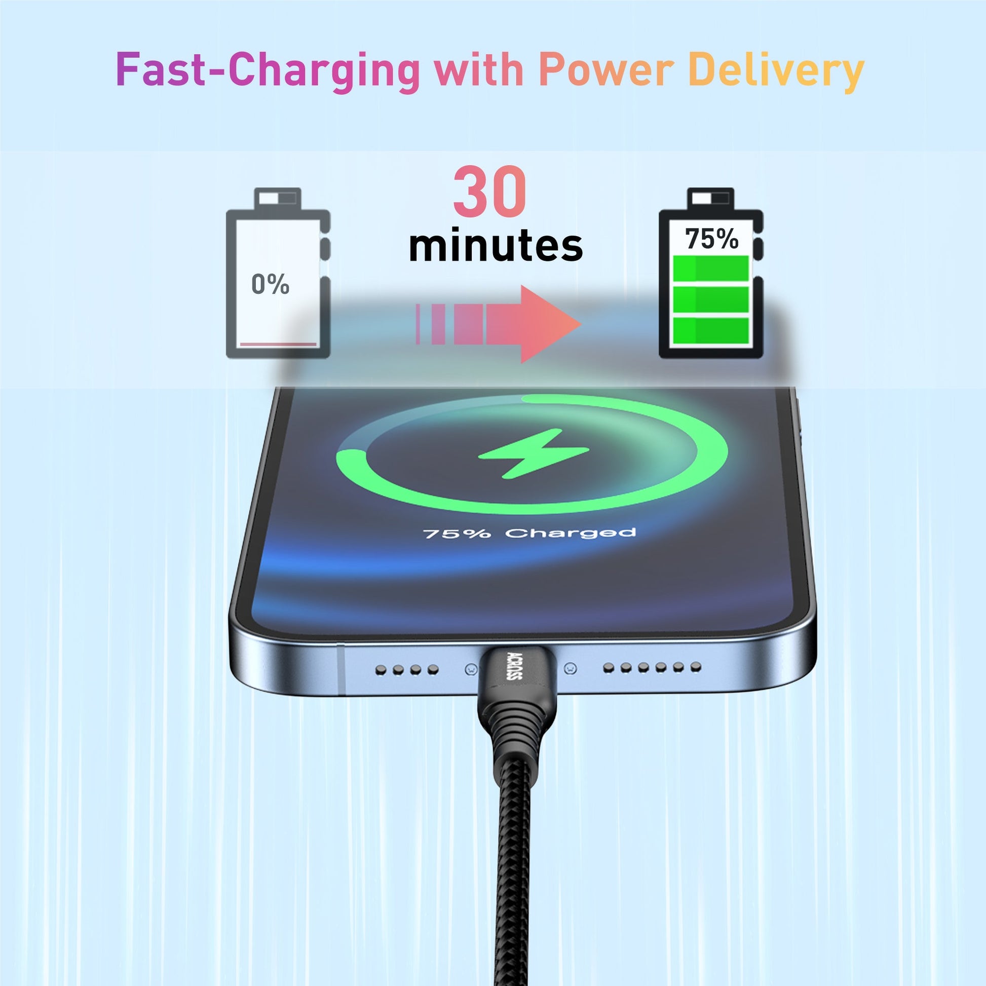 Rapid Data Transfer: Share and sync your valuable data in seconds. Whether it's large files or important documents, our cable facilitates seamless data transfer between your USB-C and Lightning devices.