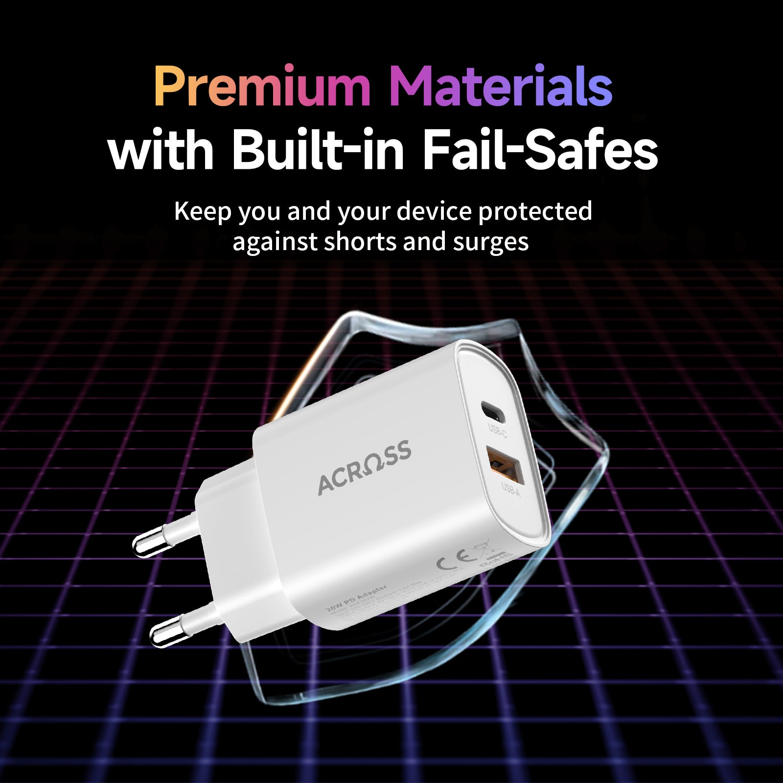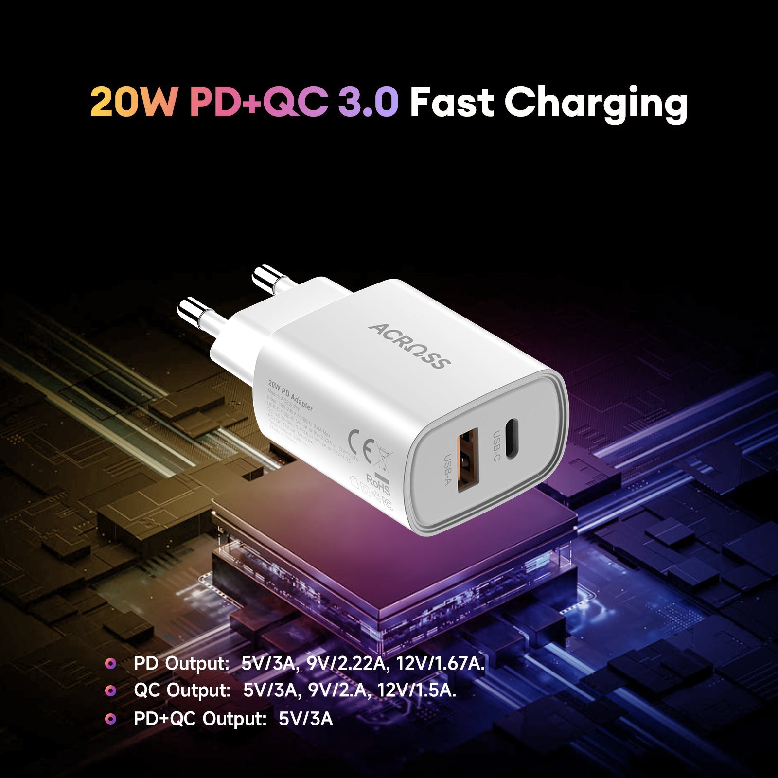 1 x Across SpeedCharge 20W PD+QC3.0 Wall Charger
